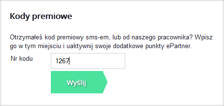 Wejdź na stronę Moje konto / Kody premiowe, wpisz otrzymany kod i kliknij wyślij.