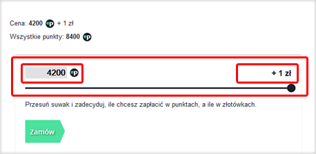 Przesuwając suwak maksymalnie w lewo ilość punktów zmniejszy się do 1200, czyli do ilości punktów które otrzymujesz "Na start" po aktywacji karty, a